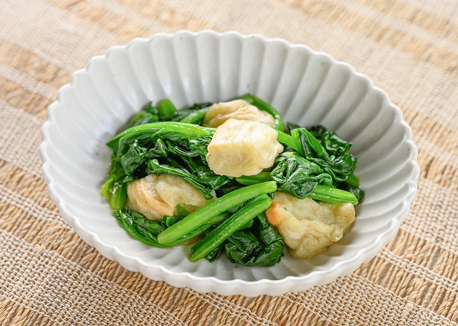 水分が出やすいお浸しも、麩を一緒に入れることで余分な水を吸ってくれるから、味がぼやけず食べやすい。洗い物を減らしつつ、ほっとする副菜を手軽に作れる防災レシピです。